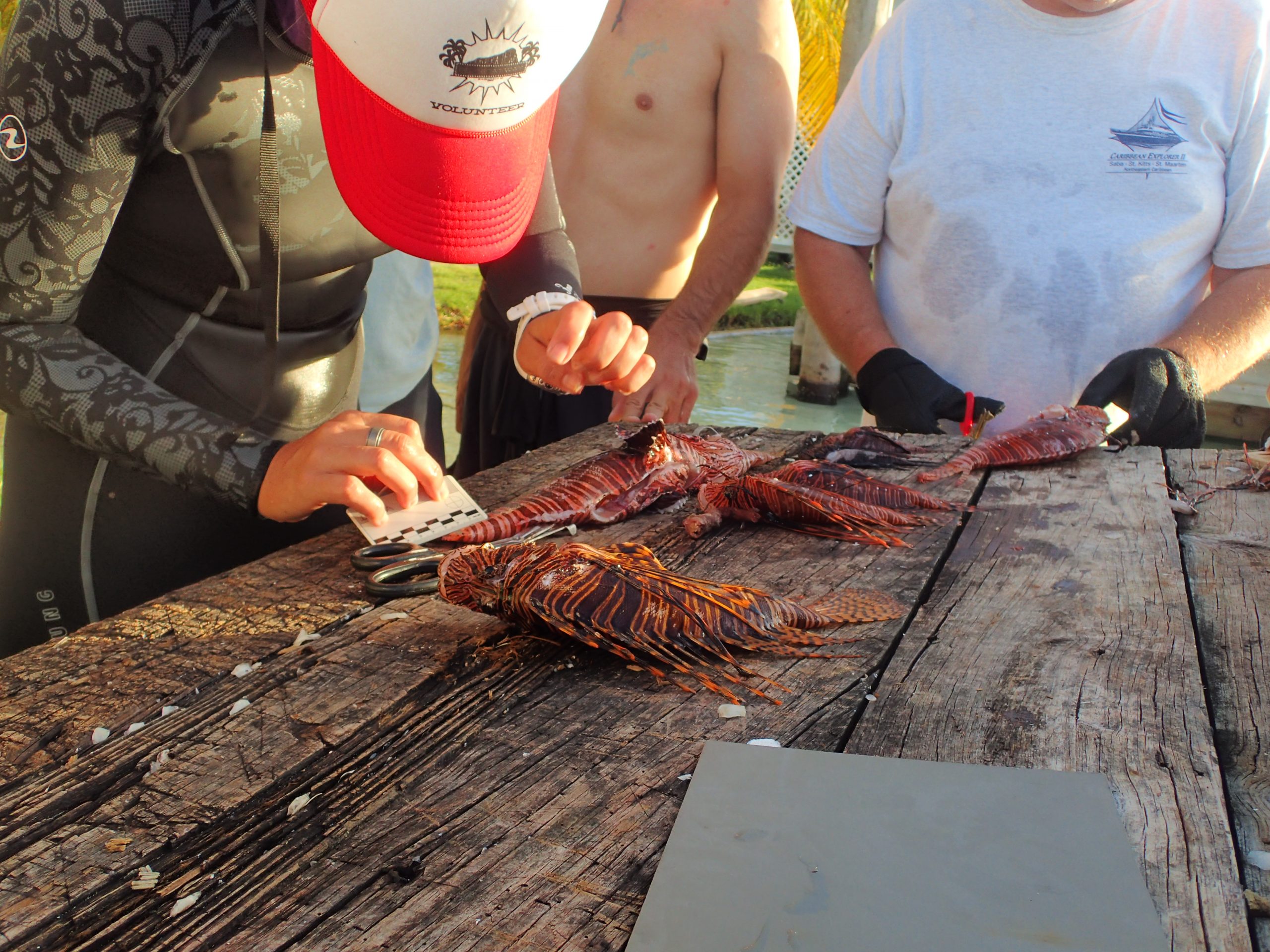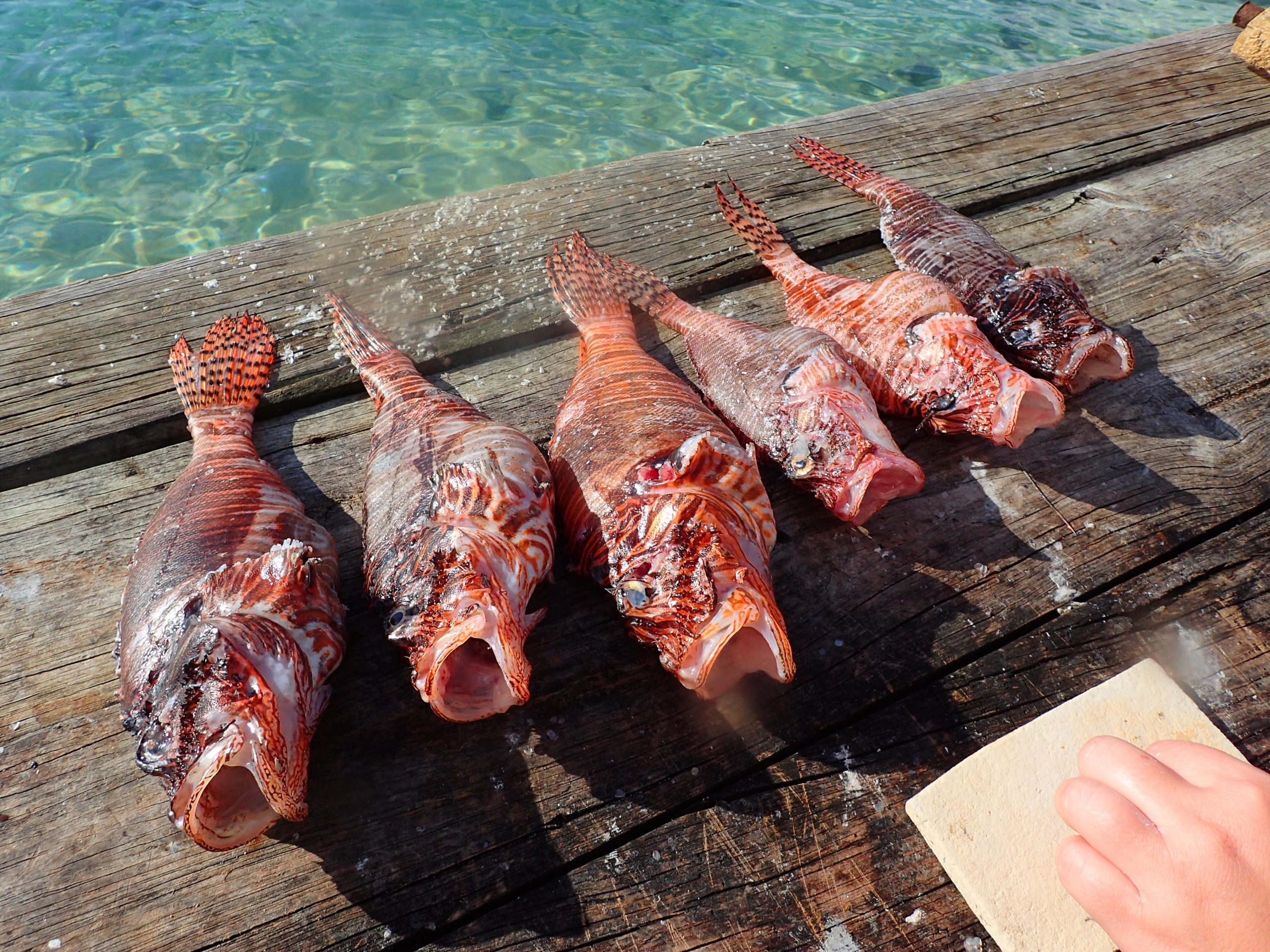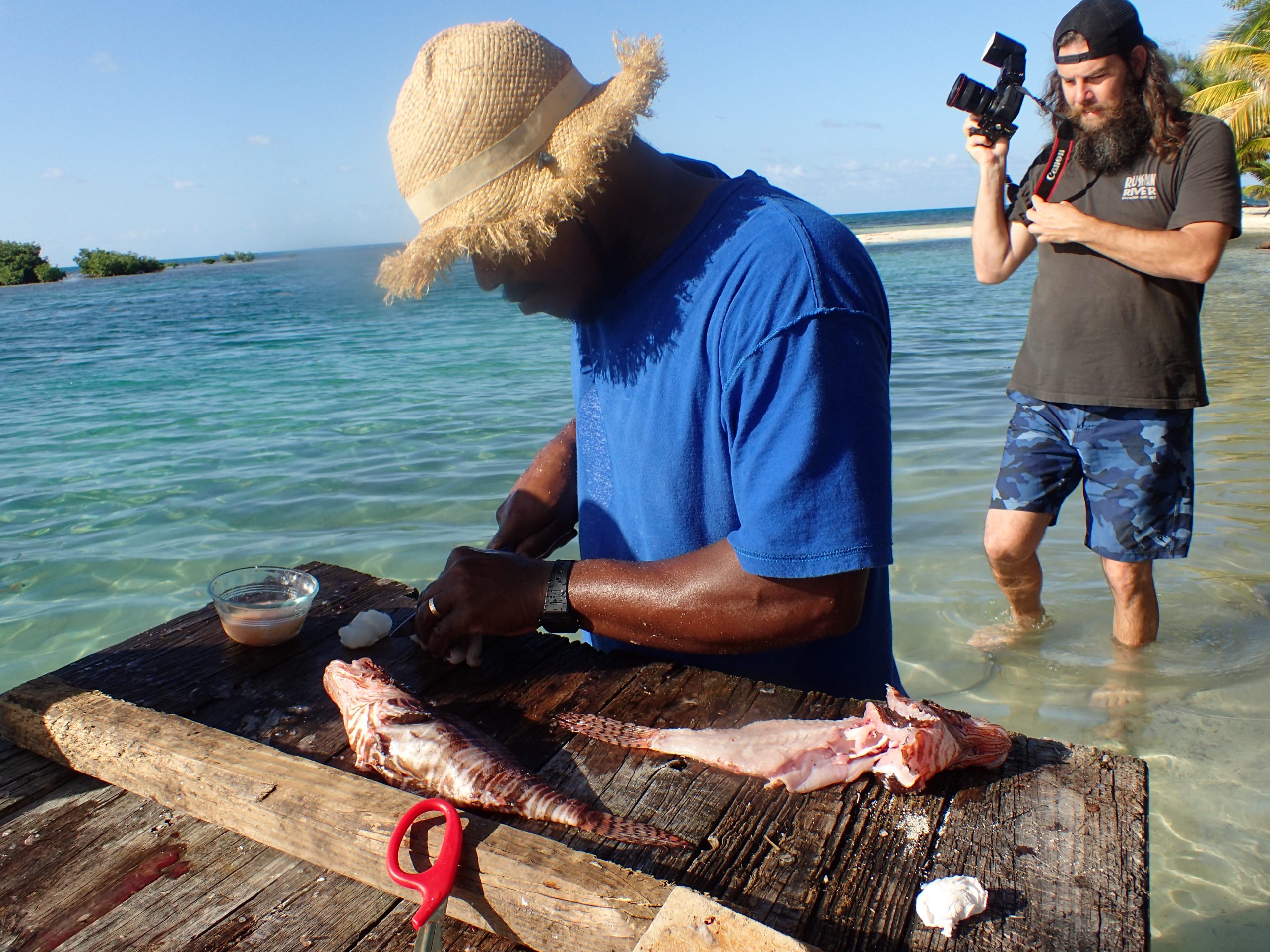In 2011 I went to Belize to work as a SCUBA instructor on Glover’s Atoll, Isla Marisol. That first year there were no Lionfish on any of our dives. The following year we began to see them on occasion. The third year I came back, they were ubiquitous. The other Dive Masters had begun to kill them during our dives. Soon the tourists became interested and wanted to try. I developed some educational talks about them and we would bring the fish to the kitchen to have our ladies cook em up for supper. The next year, in 2014 I brought a group of divers that wanted to focus on reef conservation. Phil Dustan and I developed a curriculum that combined reef ecology, lionfish gut content study and a sea urchin experiment. This was a great way to give the divers a purpose to their vacation. I hope to return to Belize with groups in the future, to show them not only the incredible underwater but to introduce them to the rich Belizian culture and the wonderful people I call my family.
